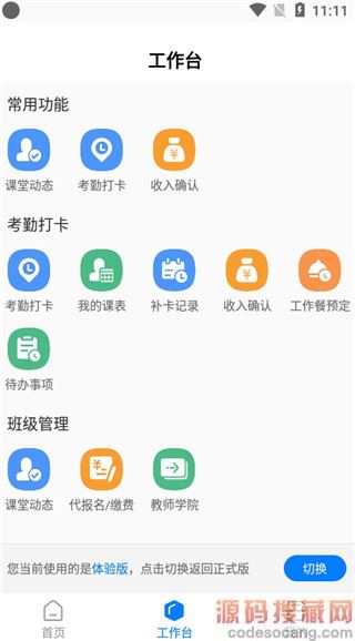 4、进入工资台,可以看到各种班级管理,课堂动态,考勤打卡等常用功能。