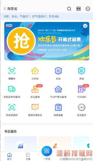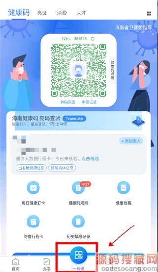 3、点击下方中间的二维码,完成每日健康打卡,即可获取海南健康码;