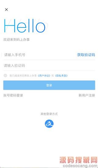2、登入注册账号,支持使用支付宝和手机号一键注册登录;