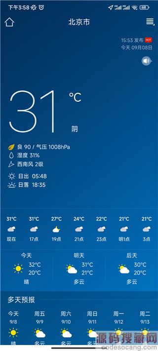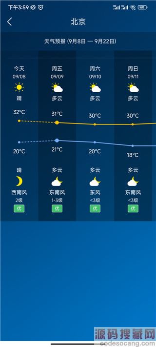 3、你还可以查看未来15日天气、风向、温度、空气质量预报等情况,轻易的掌控近期温度变化;