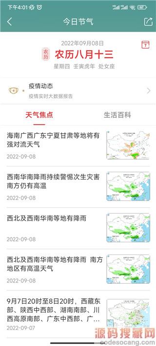 7、当然软件还为你提供了各种天气焦点以及生活百科;