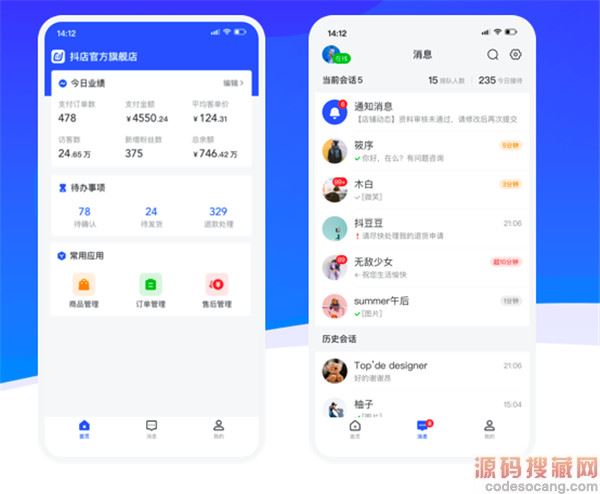 3、“消息”模块目前主要包括两类消息,一类是用户消息(即用户IM消息),另一类是平台消息(即平台消息通知)。抖音官方指出,移动工作台第一期上线的消息功能,一方面可以满足商家和客户随时随地交流互动的需求,不错过任何商机;另一方面可以方便商家及时接收平台的规则和活动通知。