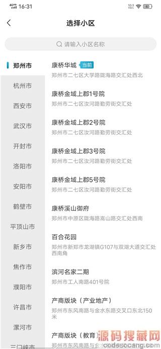 3、选择城市和小区。