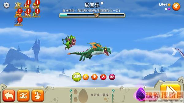 2、玩家初始只有一条小龙,通过在天空中猎食成长。这个游戏的宠物是要自己找蛋来解锁的,而龙是生长度满后解锁下一条的金币购买。