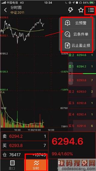 1、在行情页中点击右上角功能菜单,选择云预警;