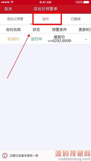 3、在运行界面可看到已添加的云预警合约。
