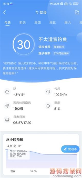 2、点击进入可以查看钓鱼指数,在这里就能够查看最近七天的钓鱼指数了。