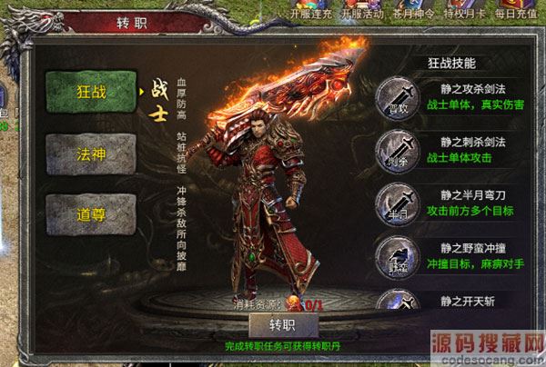 相信玩过传奇的玩家对经典铁三角——道法战三大职业并不陌生,而凤凰传奇手游也将在开服第9天时正式开放转职系统,玩家可将战士转职为更高级的“狂战、法神、道尊”职业。