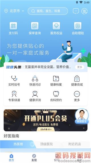 1、进入软件首页后,用户可以实时挂号、咨询医生、视频问诊等。