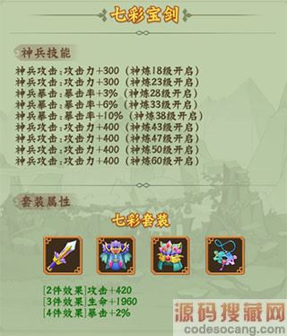 该套装和紫色套装一样,金色套装也分为输出类和防御类,分别是山神套装和七彩套装,而且这两套的武器都是除了小蝴蝶和小金刚以外的最好的输出类角色和坦克类角色的缘分武器,建议获得后建议优先装备给所在阵容的主力以提升主力角色的能力。