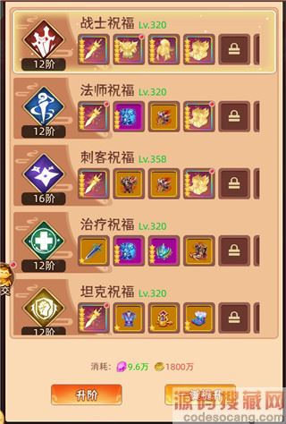 4、阶级:同一职业的角色共享阶级,阶级通过提升祝福来提升,提升阶级可以同时为一个职业所有角色带来属性提升