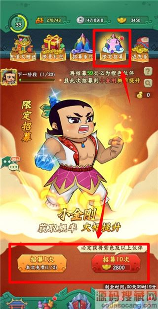 2、之后在限时活动中找到限时招募玩法点击切换到限时招募界面,然后根据招募方式就能进行招募了!