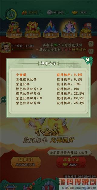 4、在各个角色的获得几率上,小金刚的获得几率也是比较低的,但是多次的参与之后也是会必得这个角色!