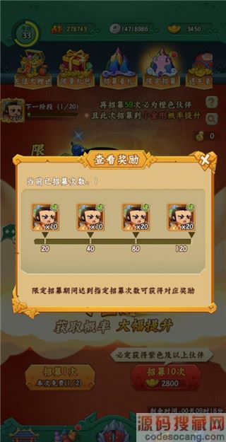 3、在招募的时候,玩家也是会有一定的几率获得碎片和其他的角色,但是每次的招募都是会获得一定数量的银币奖励!