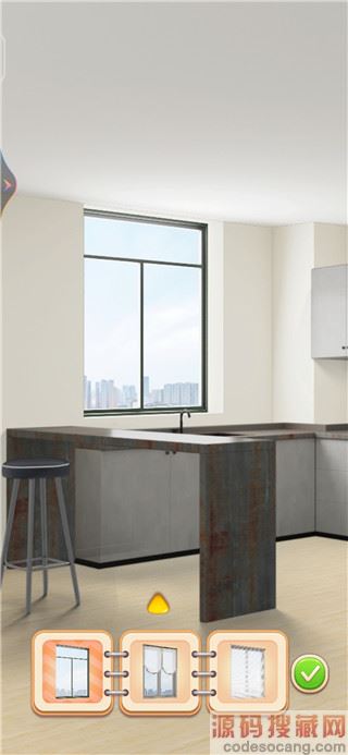 1、游戏开始,当选择一处地方需要装修时,使用一定的金钱后会出现三个不同风格的家居,根据自己的喜好来进行搭配。