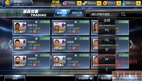 不要着急,在这些备选中我们首先根据自己的球队阵容来引进优质球员,比如我就非常想要一个S品质的PF,可以用筛选找出现在市场上挂售的中锋有哪些。