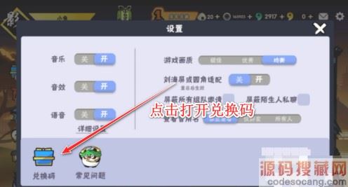 游戏主界面点击右上方设置,兑换码输入兑换码文字领取,点击填写后需要在邮箱内提取!