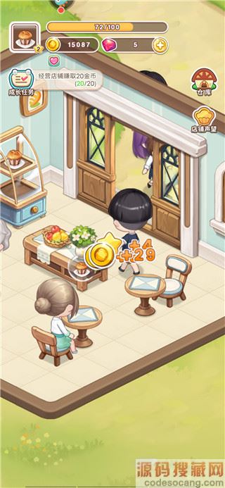1、游戏中最基础的获取金币方法就是,当客人们吃完甜品就会留下金币,所以想要获得更多金币就要加快售卖速度。