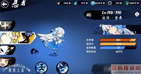 3、流派忍术·幻雪·舞霜华:玉狐一族的传承秘术,召唤幻雪霜花发射2条逐渐相吸的冰冻射线,聚合完成后射线将合为1条(聚合阶段),忍术行将结束时进入霜之舞阶段,霜花不断膨胀向前飞出并分裂出更多射线,最终如繁星般碎裂消逝。