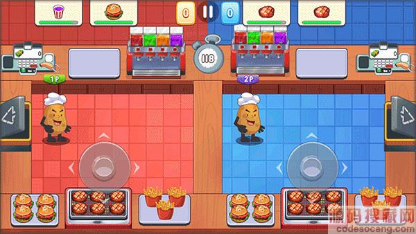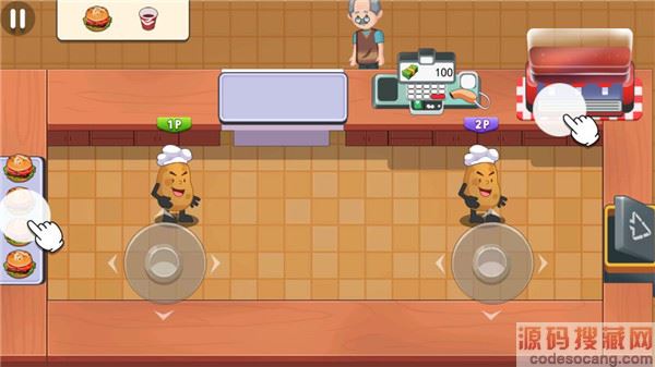 3、合作模式顾名思义则需要两人合作一起完成客人的需求,如图所示:分别移动角色至所指位置,制作食物,相互配合完成订单务。