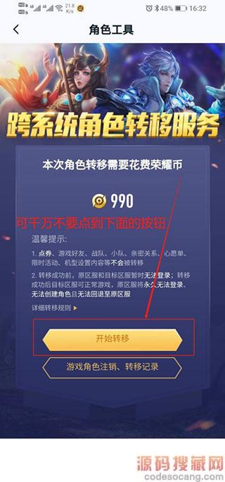 4、点击进入到“角色工具”中,之后点击“开始转移”按钮;即可进行角色转移系统了。