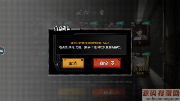 5、当代理人获得了最心仪的DOLLS十连阵容后,想要结束新手无限重抽,确认此次结果,点击[确定]按钮即可!