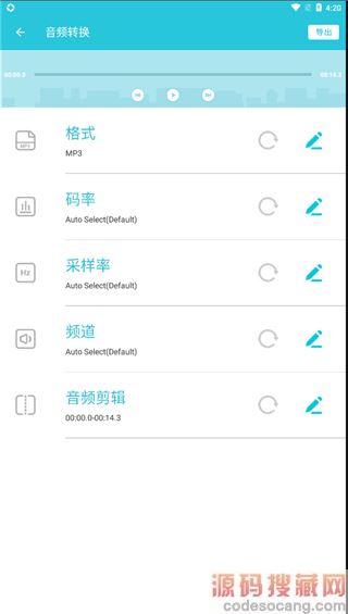 3、之后我们对其修改格式、频道、码率、采样率以及音频剪辑;