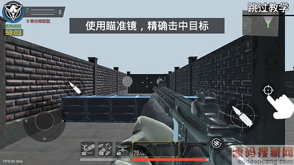4、到达指定地点后,点击开火按钮练习射击开枪击中标靶。