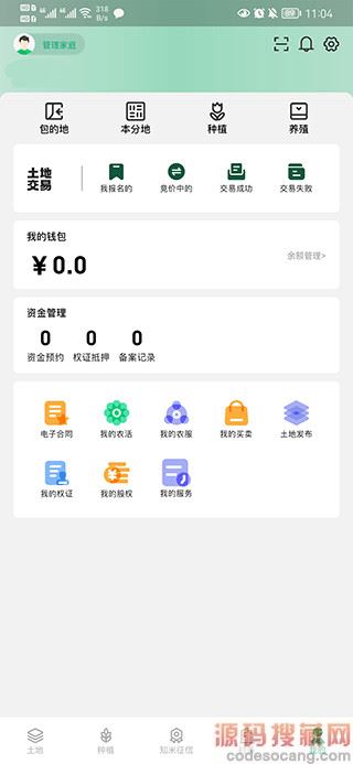 4、用户在种植区可以查看自己的各种种植信息,还能够申请登记,购买农资。