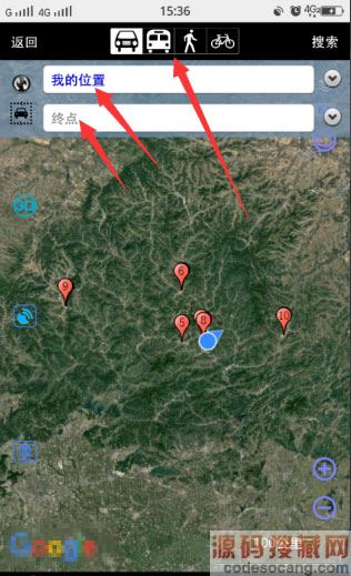 3、路线,选择到达目的地的交通方式后,确定起点和终点,自动生成导航路线图;