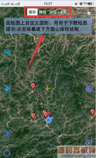 5、包含图形的框选下载、画线测量距离和测绘使用;
