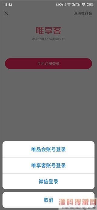 1、在本站下载安装,并且运行唯享客app,然后用微信,唯享客、唯品会、登入: