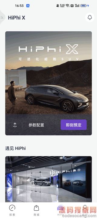 3、点开hiphi,在这里可以看到各种车型的参数配置,支持多角度预览,还可预定车辆;