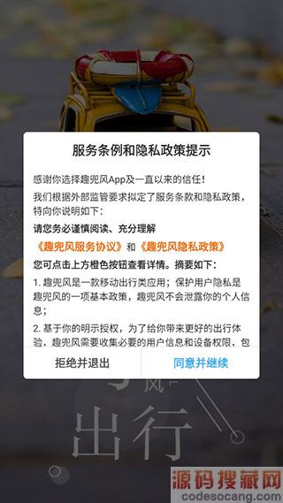 1、从本站下载趣兜风app最新版安装,打开应用,同意软件安装协议
