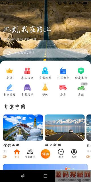 2、在首页,我们可以看到精美的旅游攻略,旅游们可以在这里查询车队活动,指定自家地图等