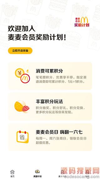 2、切换到【奖励计划】页面之后,我们还能加入麦麦会员奖励计划,消费可累积分兑换超值好礼。