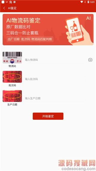 3、也可以点击右上角AI鉴定,输入物流码、批次码、以及生产日期,原厂数据比对,三码合一防止套瓶,出厂日期批次码物流码匹配判断;