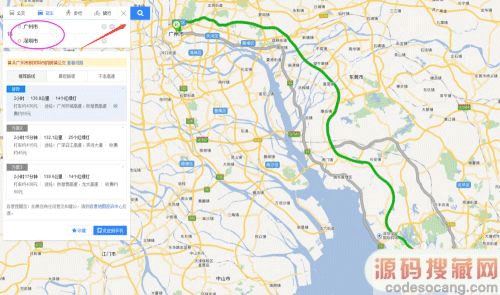 3、再在下面输入出发地点与到达地点就可以查询点于点之间的距离、收费和时间。