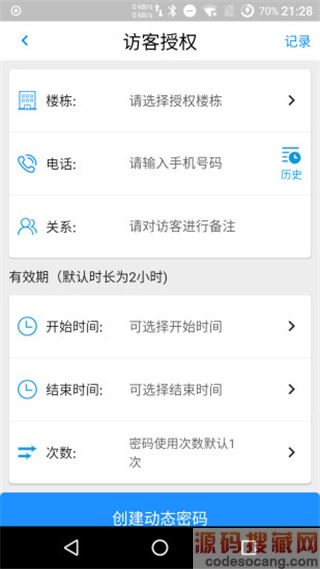 3、最后填写好相关的住户信息,点击【创建动态密码】即可。