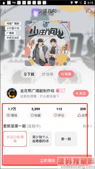 4、在播放广播剧的同时不仅可以看到字幕,还可以在上分看到小伙伴们发送的弹幕;