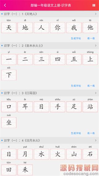 2、软件中具有教材同步、笔画和常见部首,用户可以根据需求进行选择;