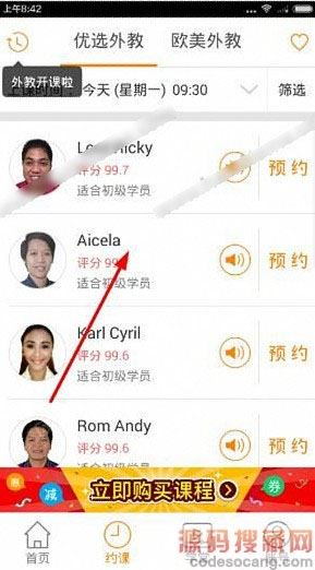 1、在本站下载并安装51素养app,进入约课界面,在这里有着大量的外教,点击预约按钮