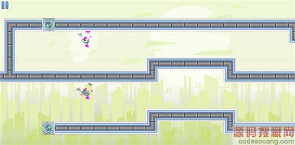 5、经过激光后,我们会分身,难度会直线提升,需要控制两位角色躲避障碍物
