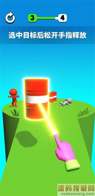 1、实际操作方法非常简单,移动手指可以选择抓取的目标,可以是游戏中的任何物体,选中目标后松开手指即可完成释放。