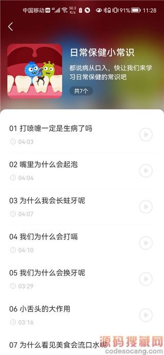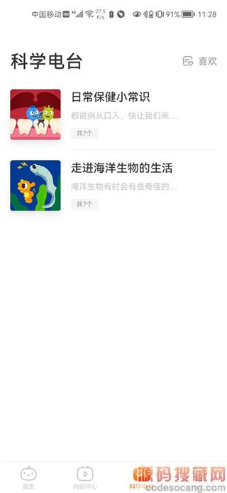 2、点击科学电台,这里有日常保健小常识和走进海洋生物的生活的课程可以听;