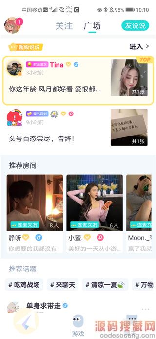 2、点击说说,在广场中可以看到很多网友发的说说;