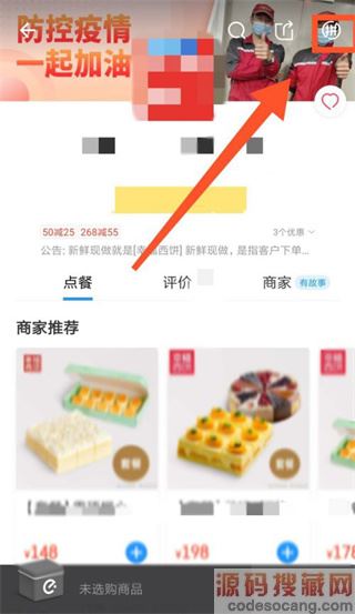 1、打开饿了么点餐app,进入一家店铺,点击右上角“拼”;