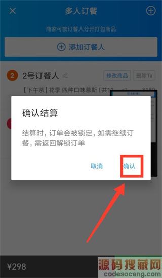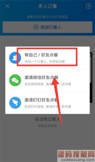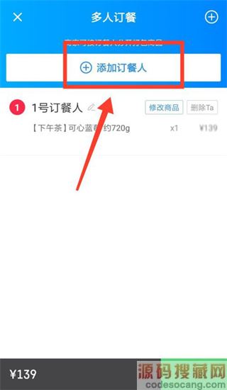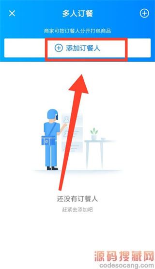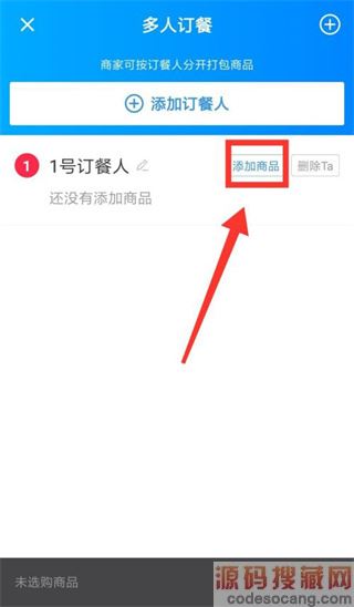 5、选好了后,返回多人订餐界面,点击添加订餐人和添加商品;
