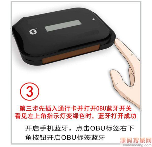 3、先插入通行卡并打开OBU蓝牙开关,待指示灯变绿色则代表蓝牙成功打开;