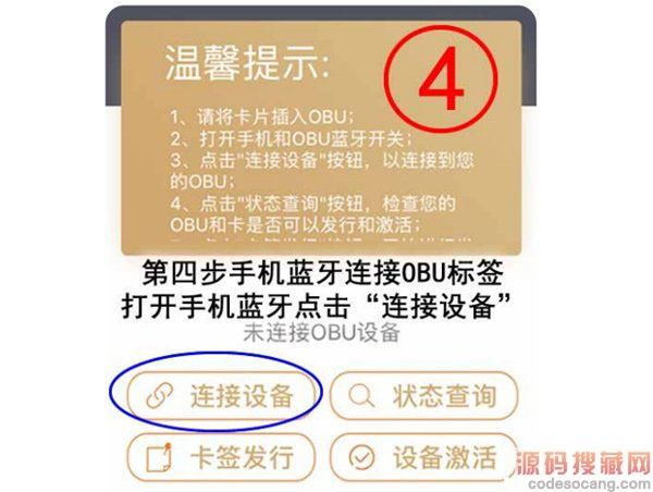 4、用手机蓝牙连接OBU标签,打开手机蓝牙,点击“连接设备”;